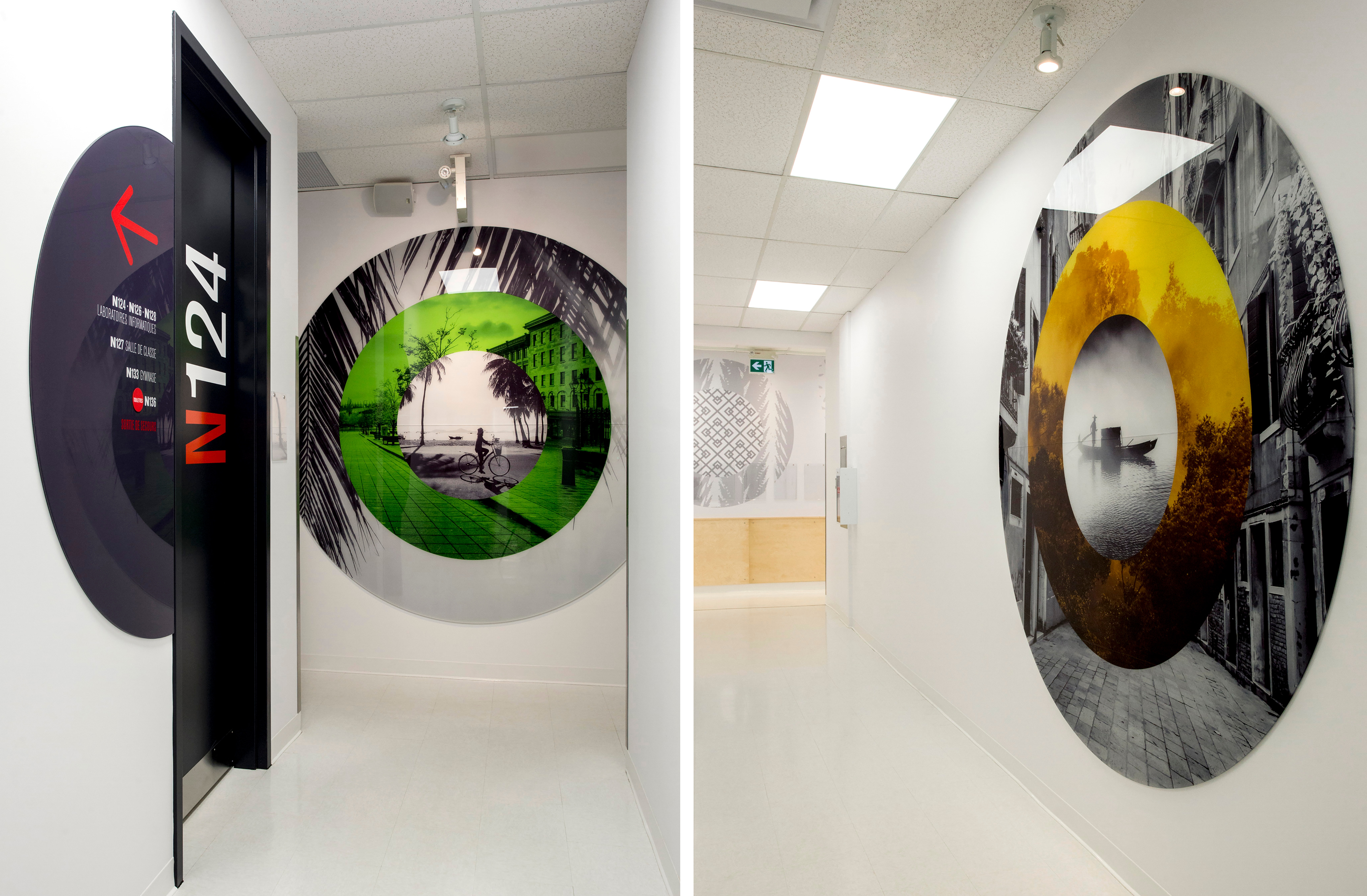 Branding et signalétique pour le nouveau Centre d'éducation multiculturel du Cégep Marie-Victorin.
